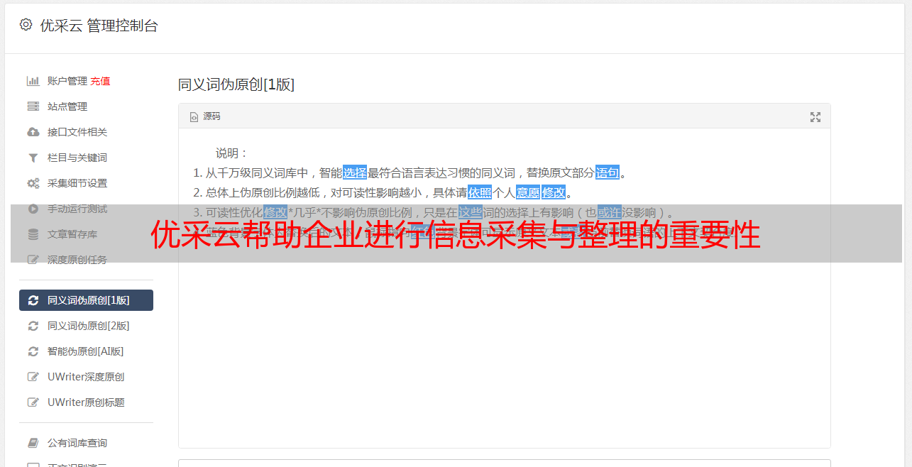 总之,优采云是一款卓越而可靠的信息采集神器。不仅能够有效地帮助用户进行信息采集和SEO优化;考虑到用户体验特性方面也有很大的进步。如今很多*敏*感*词*大中小型企业都在使用它来帮助解决信息整理问题。如想要尝试使用它来帮助你的工作流程中就去 www.ucaiyun.com 吧。