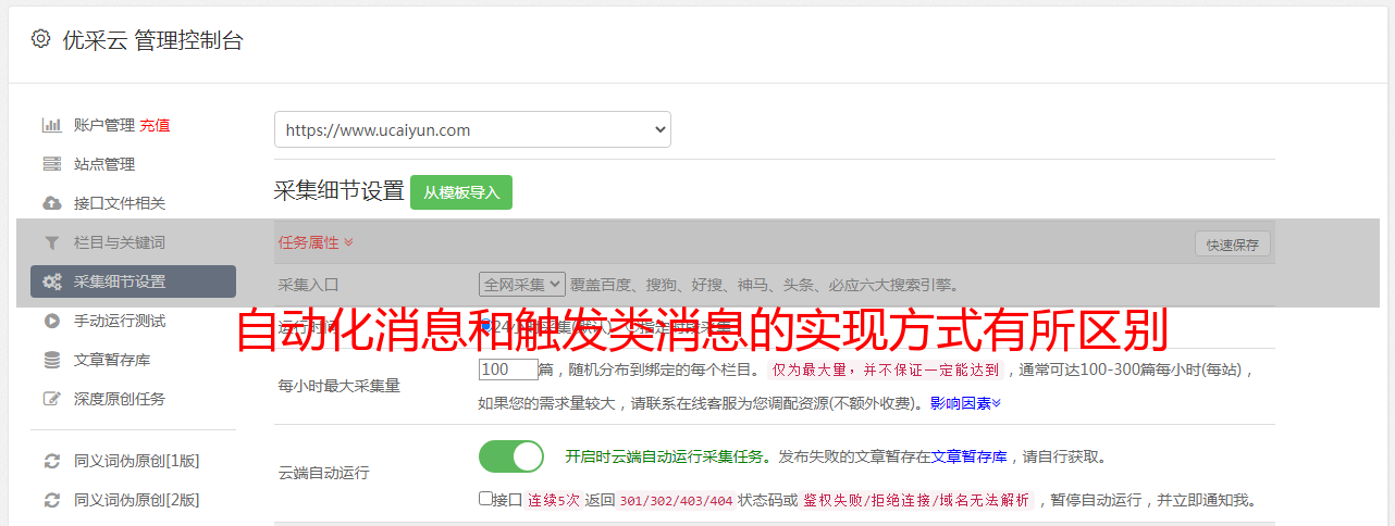 不同发送方式的服务方式和字段不同。比如微信服务号的订阅通知。模板需要在微信提供的固定字段中选择使用,而push是直接对接的界面,副本可以自己设置。渠道对发送通知和营销有不同的限制。