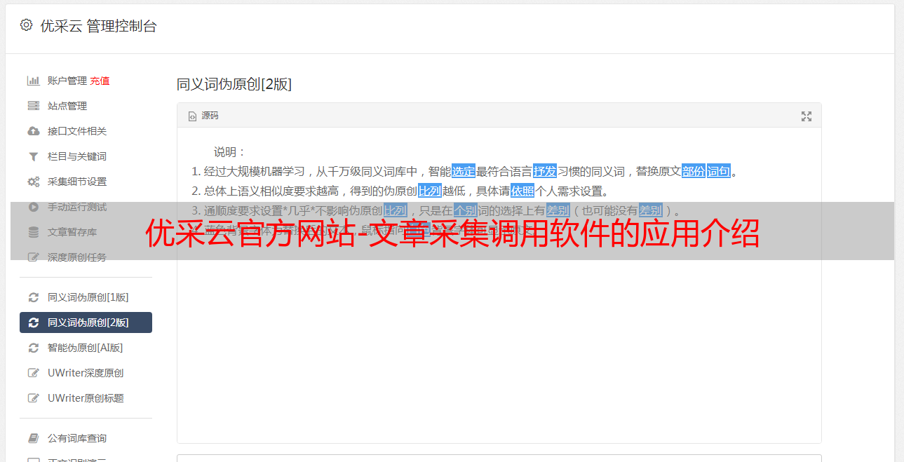 优采云官方网站-文章采集调用软件的应用介绍