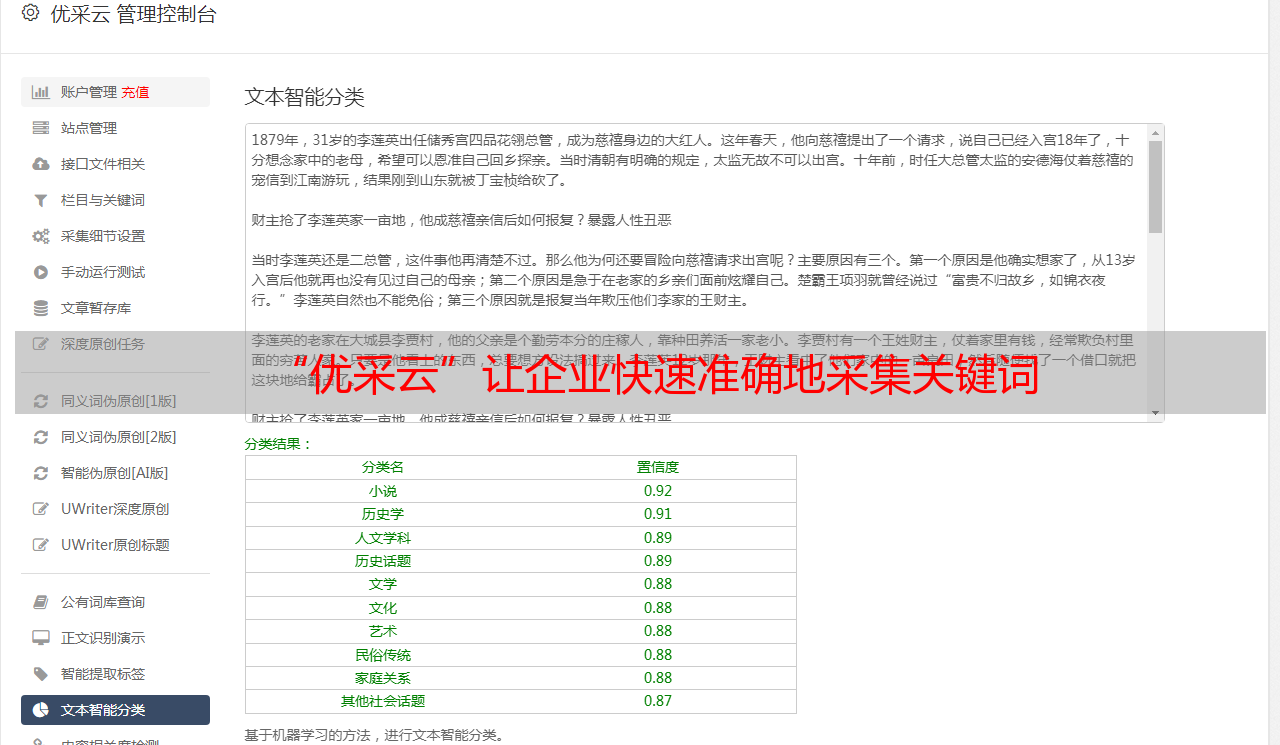 “优采云”让企业快速准确地采集关键词