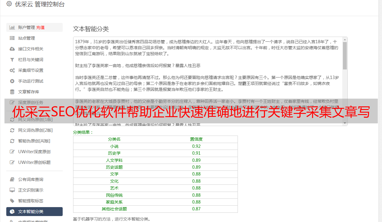 优采云SEO优化软件帮助企业快速准确地进行关键字采集文章写作工作