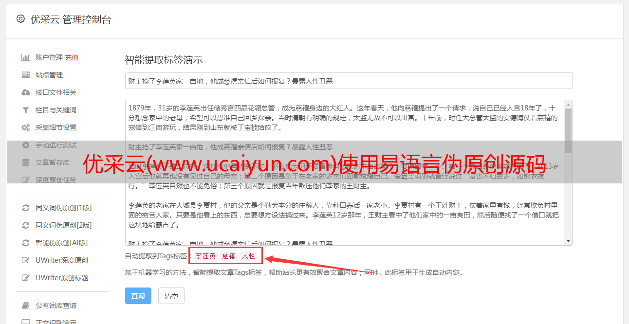 优采云(www.ucaiyun.com)使用易语言伪原创源码