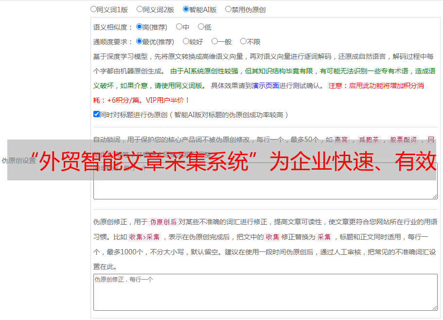 “外贸智能文章采集系统”为企业快速、有效地实现