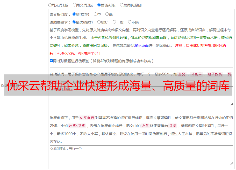 总之,使用优采云可以帮助用户快速形成一个海量、高质量的词库,并将所有信息直接插入词库中。此外,它还可以帮助用户对网站上的文本、图片、表格、音频、视频进行分析和优化,从而有效地提升网站在搜索引擎中的排名。因此,使用优采云不仅能够帮助用户快速形成一个海量、高质量的词库,而且还能够帮助用户进行SEO优化。因此,使用优采云是保障网站内容不断创新和升级的最佳方式之一。