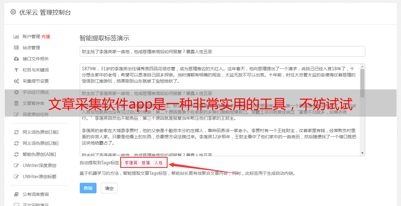 优采云 发布时间: 2023-02-05 23:32文章采集软件app是一种非常实用的工具,尤其是在网络上收集大量内容时,可以大大节省时间。近年来,文章采集软件app的使用者越来越多,也让这种工具变得更加强大。