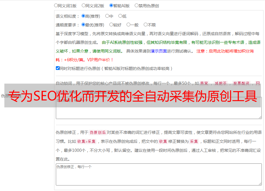 近年来,全自动采集伪原创工具受到了广泛关注。这类工具通常是一款软件,能够根据关键词从互联网上自动采集相关文章,然后通过AI技术将文章中的信息重新组合、修改句子、替换词语、加入相关图片等方式生成新的文章。这样就能够快速地生成大量高质量的内容,而且不存在版权问题。