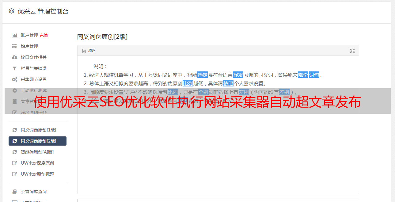 使用优采云SEO优化软件执行网站采集器自动超文章发布