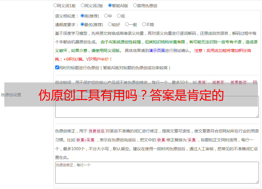 其次,伪原创工具可以帮助你把内容变得独特。相信大家都明白,如果你想在搜索引擎中获得好的排名,就必须要有独特、高质量的内容。而伪原创工具就是帮助你做到这一点的好帮手,它可以将你的文章进行重新修改、整理和归类,使之变得不同凡响。