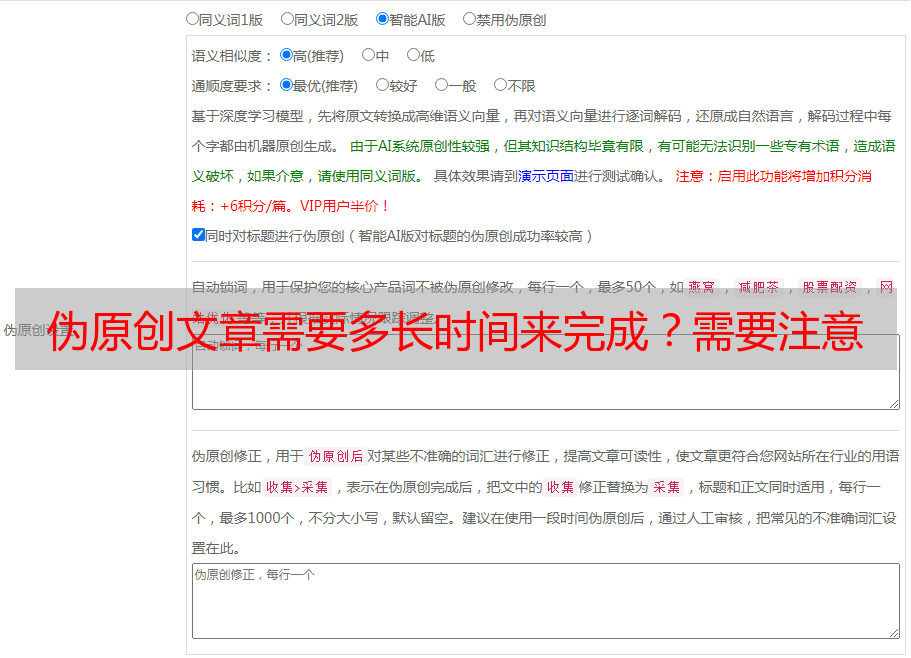 因此,通常情况下,一篇伪原创文章所花费的时间大约在2-3小时左右。当然,如果字数较多、内容较为复杂、及考虑到SEO优化等因素时,所耗时间将会有所延长。