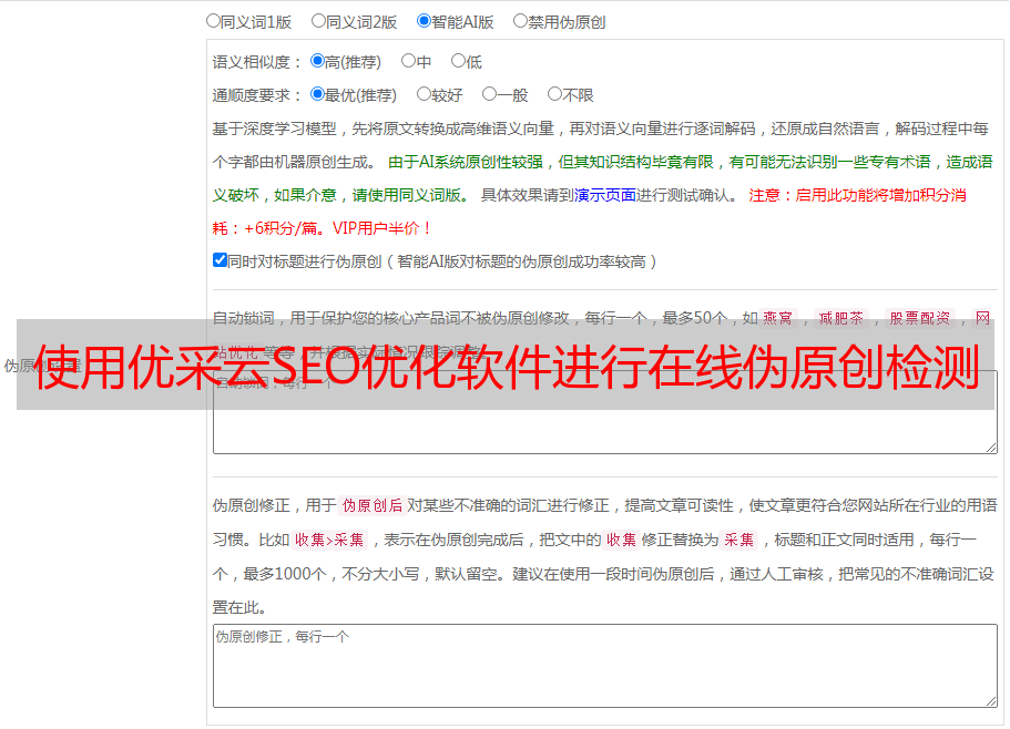 使用优采云SEO优化软件进行在线伪原创检测(图)