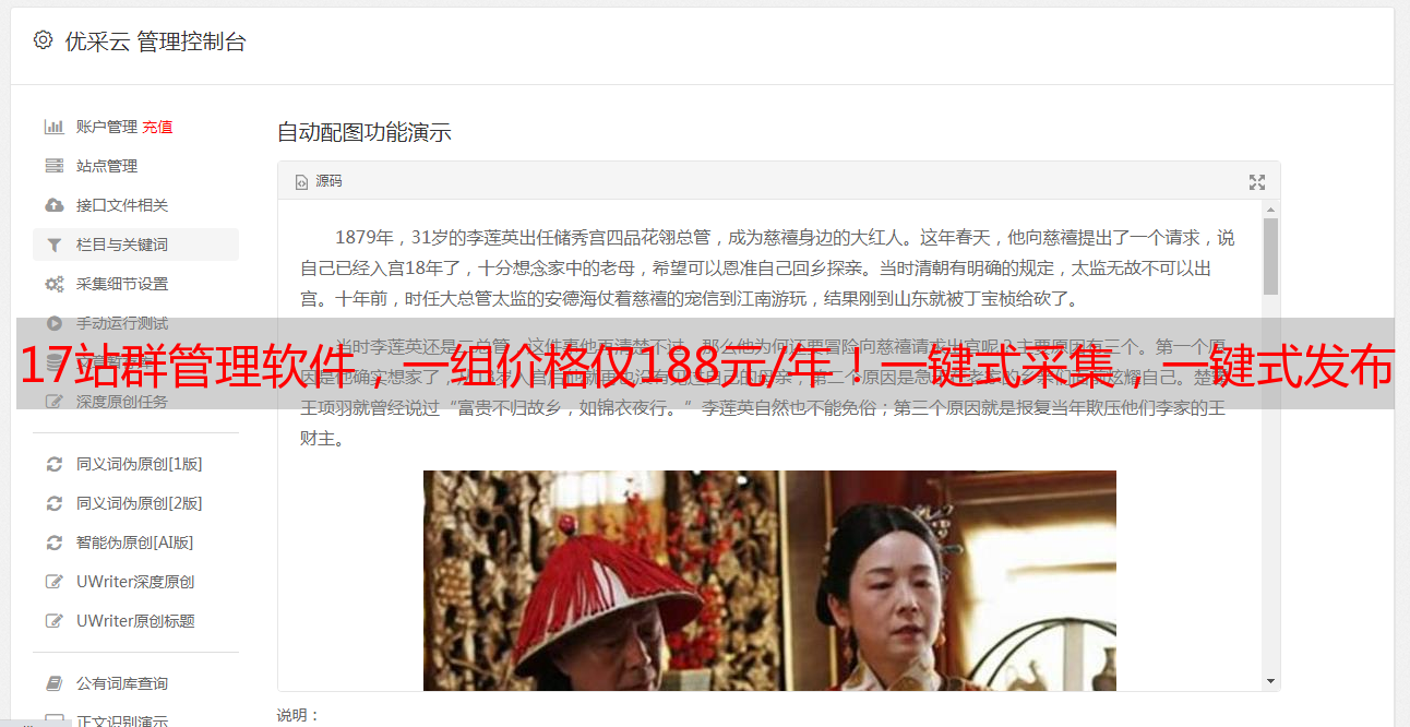 17站群管理软件,一组价格仅188元/年!一键式采集,一键式发布