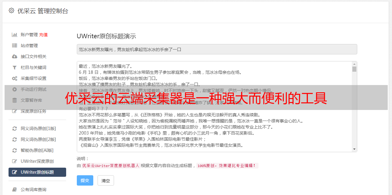 总之,优采云的云端采集器是一种强大而便利的工具。它不仅能够帮助企业高效地对信息进行处理并提供SEO优化功能;而且还能够帮助用户将信息上传到ERP中并实现信息共享、流程跟踪。如此强大而便利的特性使得该工具成为当前很受人们青睐的一种应用工具。