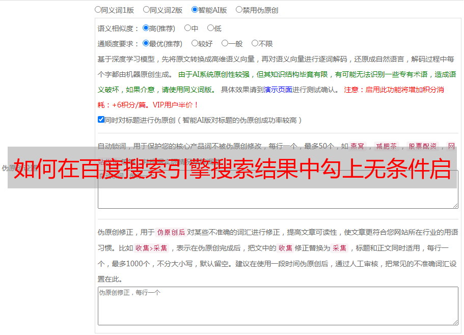 如何在百度搜索引擎搜索结果中勾上无条件启动监控报警