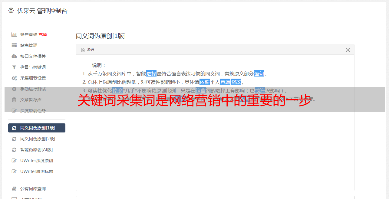 优采云的核心功能是:一是快速采集到有价值的关键词;二是可以对采集到的关键词进行分类归类;三是能够根据不同场景选择不同策略进行采集。