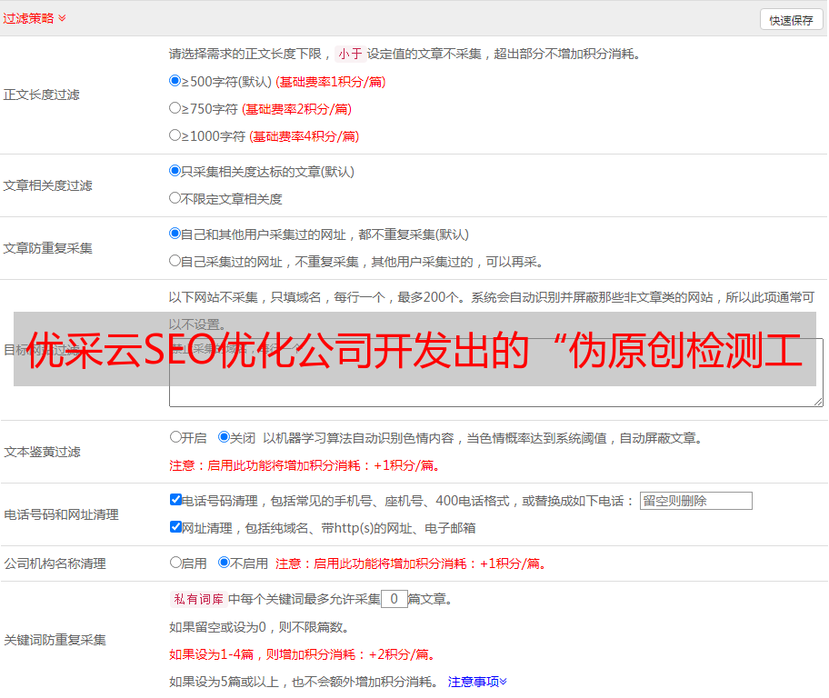 优采云SEO优化公司开发出的“伪原创检测工具”
