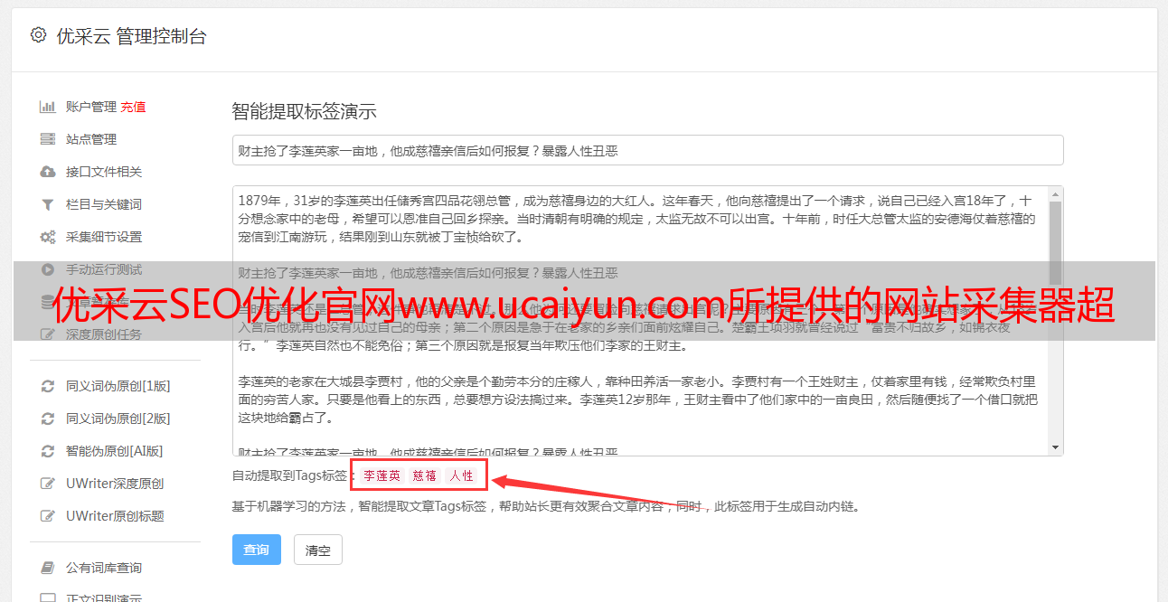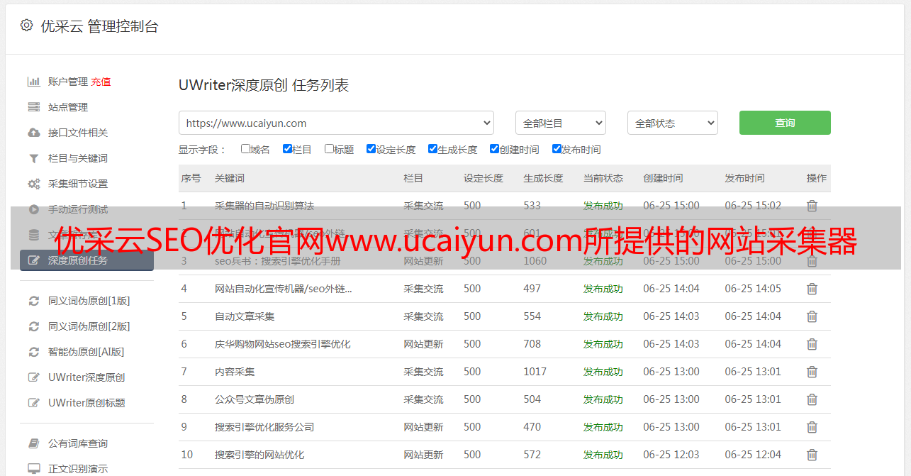 优采云SEO优化官网www.ucaiyun.com所提供的网站采集器超文章发布服务