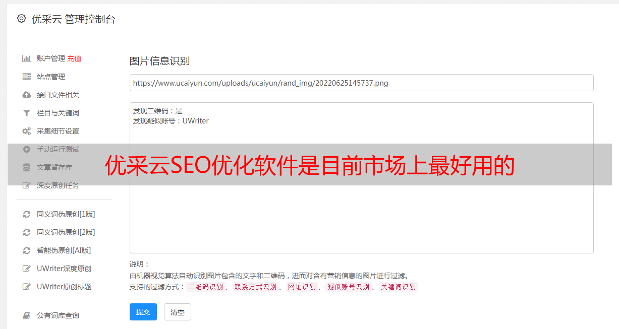 总之,优采云SEO优化软件是目前市场上最好用的伪原创工具之一,它不但能帮助用户快速生成高质量、丰富多彩的文章内容,而且还具有强大的语法检测、实时监测、数据分析和可视化展示功能。如果你想要找一个好用、高效、易上手的伪原创工具来帮助你生成新鲜、独特、专业精准的原创文章内容,那么就不要错过了优采云SEO优化软件了。它是一款集开发、测试、部署和数字化市场营销于一体的行业领先平台。想要尝试使用吗?快来www.ucaiyun.com 这里有大量你想要使用的各类工具供你选择!