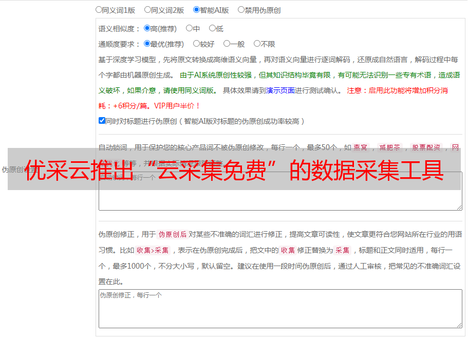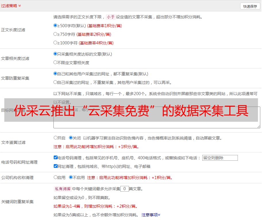 考虑到这一现实情况,优采云就推出了一款名为“云采集免费”的数据采集工具,它可以帮助用户在网上快速、高效地采集所需要的信息。优采云即时将所有信息存储到本地文件中,便于用户离线使用。另外,优采云还能够帮助用户实时监测竞品信息,快速及时地发现对手的行为和动态。此外,优采云还能帮助用户对网站内容进行SEO优化,从而使用户的网站能够在搜索引擎中获得更好的位置。