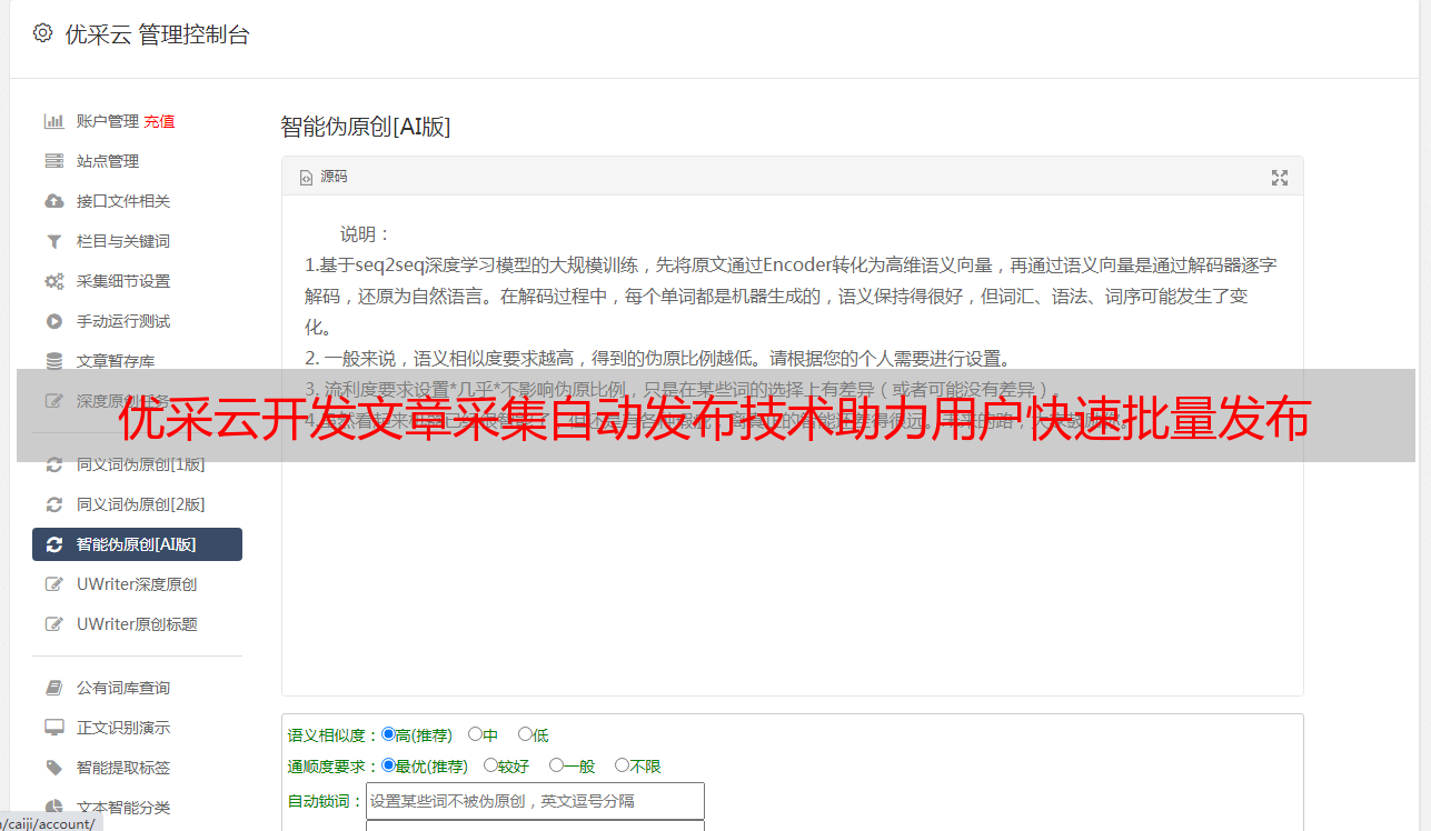 优采云开发文章采集自动发布技术助力用户快速批量发布