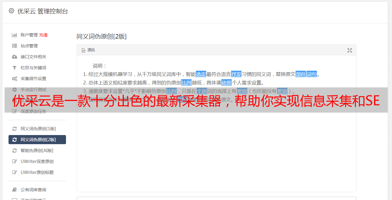 优采云是一款十分出色的最新采集器,帮助你实现信息采集和SEO优化