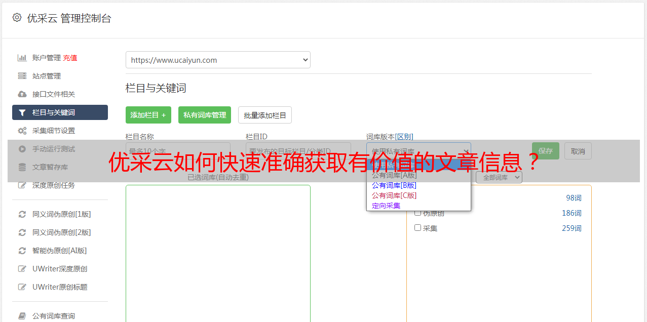 总之,优采云是一款功能强大、使用方便的文章采集软件。它不但可以快速准确地根据关键词采集文章,而且还可以帮助用户快速将所采集的内容制作成PDF文档。如果你也想尝试一下优采云的强大功能,不妨赶快前往www.ucaiyun.com注册一个帐号吧。