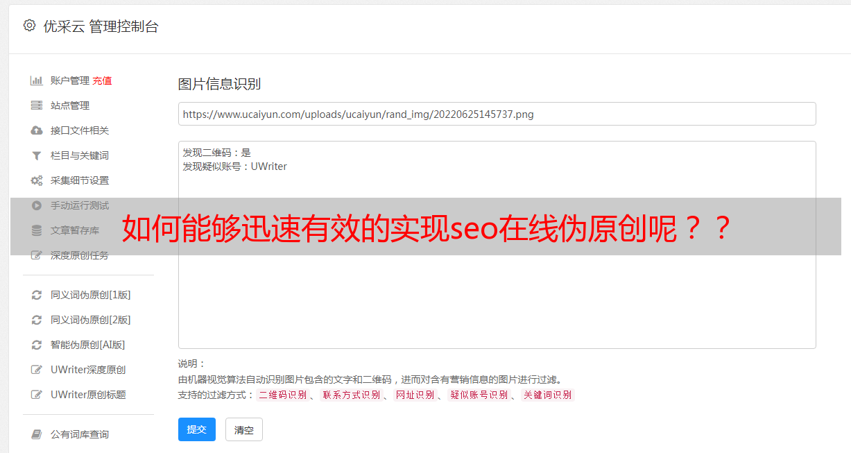 优采云 发布时间: 2023-02-10 21:28近年来,随着互联网的发展和社会的进步,网站优化工作日趋重要。而在众多的SEO优化方法中,伪原创是其中不可或缺的一部分。尤其是在搜索引擎的更新换代中,原创内容的重要性越来越凸显出来。那么如何能够迅速有效的实现伪原创呢?这就是我们今天要讨论的话题——seo在线伪原创。