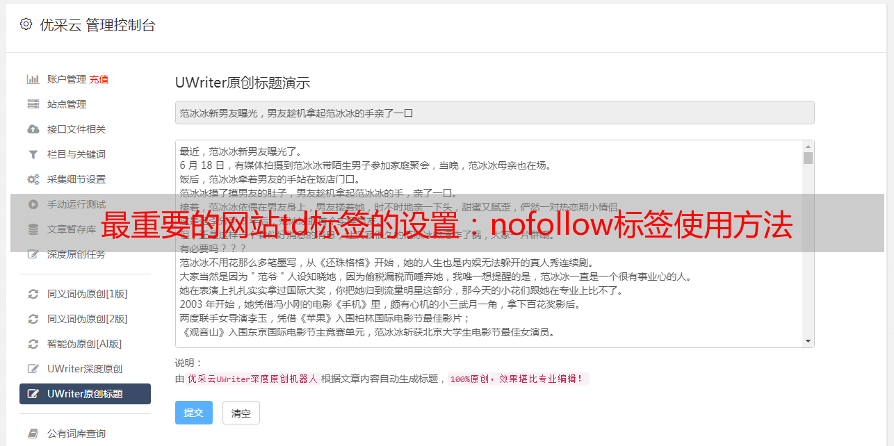 优采云 发布时间: 2021-06-09 01:06最重要的网站td标签的设置:nofollow标签使用方法
