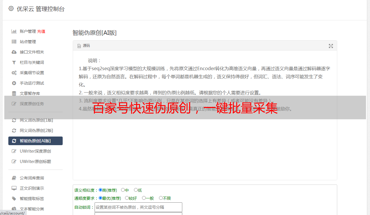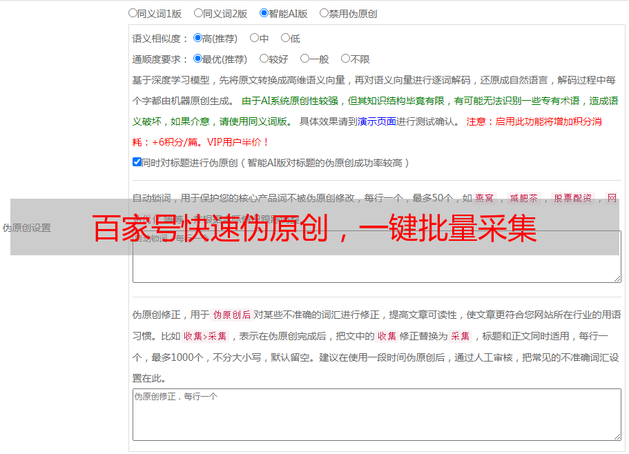 5、总而言之,使用百家号批量采集伪原创工具不仅能够快速生成内容并把不同内容合并放在一起形成一篇独一无二的作品:还能有效地避免出现作品相似度过高考核不通过的情况。