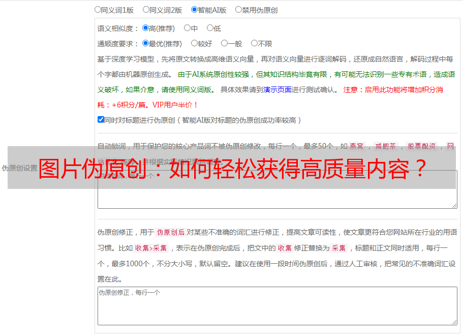 4.不过要注意,如果图片伪原创过度使用,会对文章产生不好的影响。所以使用图片伪原创时要注意平衡。
