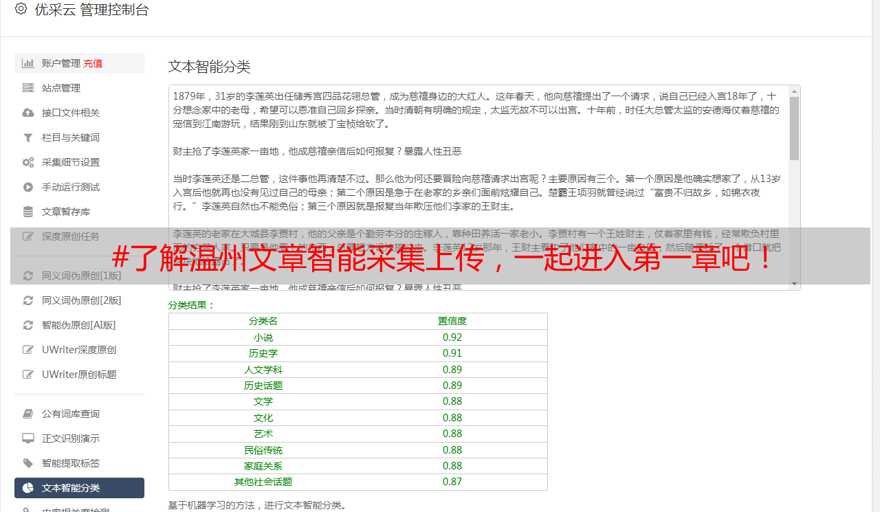 #了解温州文章智能采集上传,一起进入第一章吧!