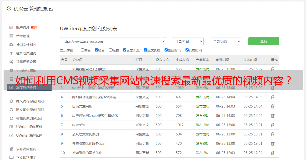 1.CMS 视频采集网站具有快速、准确和低成本优势。它能够帮助您快速搜寻最新、最好的视频内容,从而大大减少人工工作量。