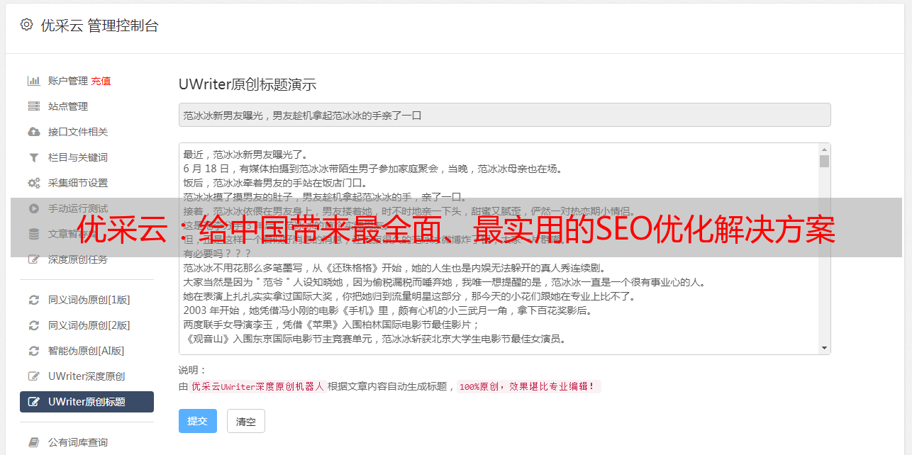 优采云:给中国带来最全面、最实用的SEO优化解决方案