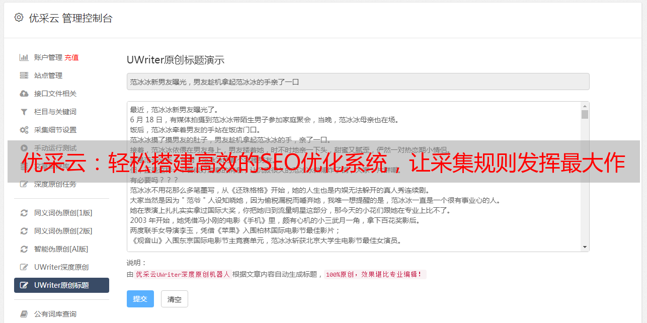 优采云:轻松搭建高效的SEO优化系统,让采集规则发挥最大作用!