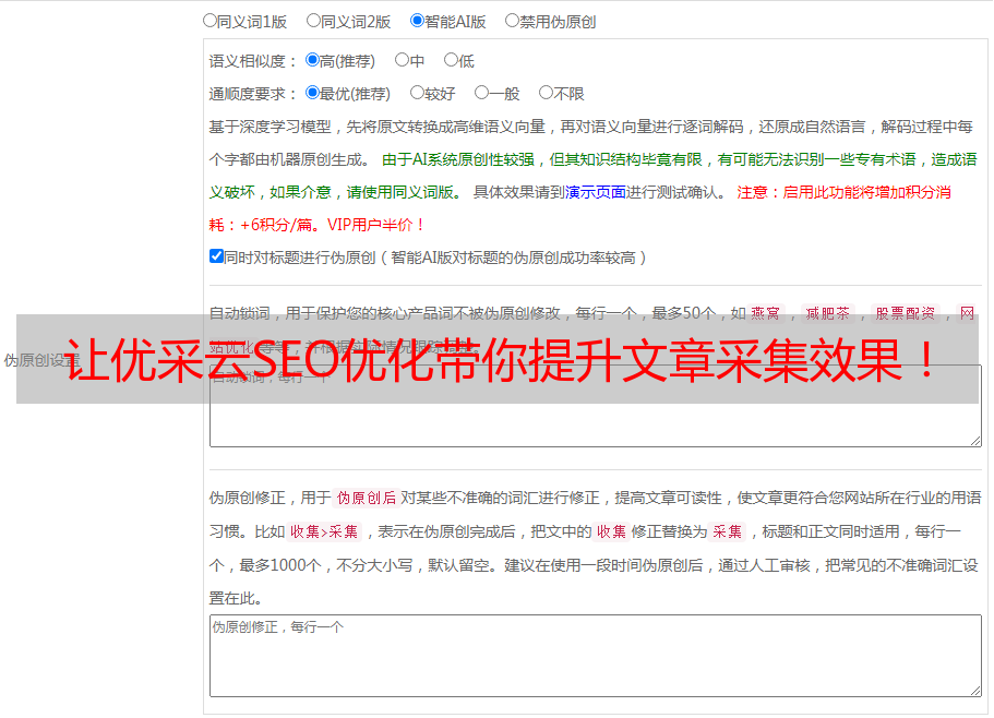 优采云SEO优化不仅能够帮助用户快速准确地采集到各大淘宝达人发布的文章内容,还可以帮助用户对文章内容进行SEO优化。该软件拥有强大的SEO优化功能,可以将用户所采集到的文章内容根据用户所设定的关键词进行SEO优化,将原本低效、不咋地的文章内容进行SEO优化后便能够大大增强文章内容在搜索引擎上的评分,使得文章内容在搜索引擎上易于被找到。