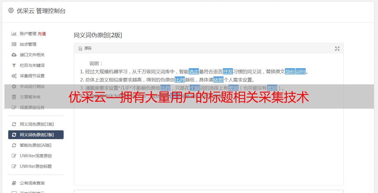 总之,优采云是一个强大而全面的服务工具,可以帮助用户快速、有效地优化他们的网站内容和SEO效果。如果你想要在互联网上取得成功,不如试试使用优采云吧!如想要了解详情请浏览它的官方网站www.ucaiyun.com 。