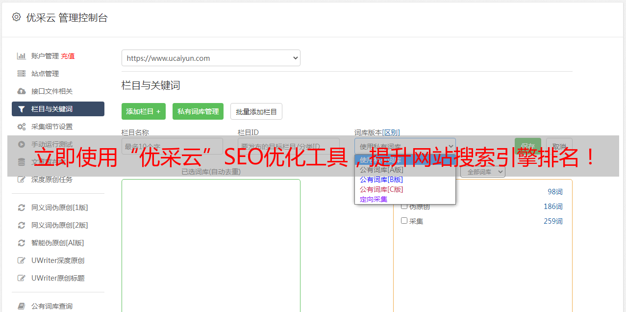 立即使用“优采云”SEO优化工具,提升网站搜索引擎排名!