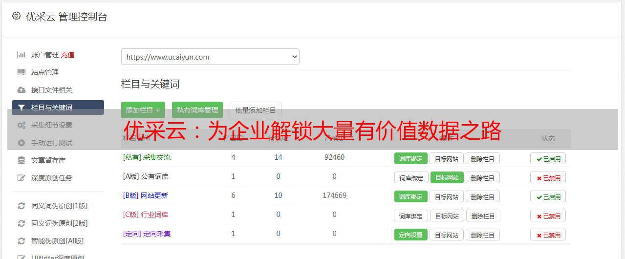 总之,优采云为企业采集大量有价值的数据打开了一扇大门。无论是对内部信息进行分析,还是对市场信息进行监测都将大大减少人力成本和时间成本。如果你想要尝试使用优采云来进行数据采集工作,你可以访问它的官网www.ucaiyun.com来了解相关信息。