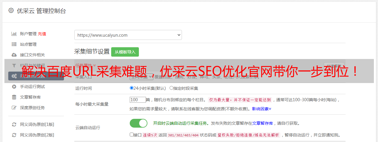 解决百度URL采集难题,优采云SEO优化官网带你一步到位!