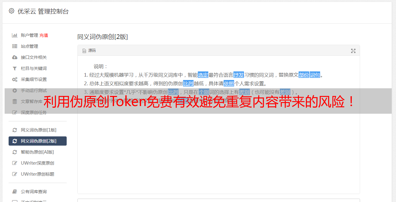 利用伪原创Token免费有效避免重复内容带来的风险!