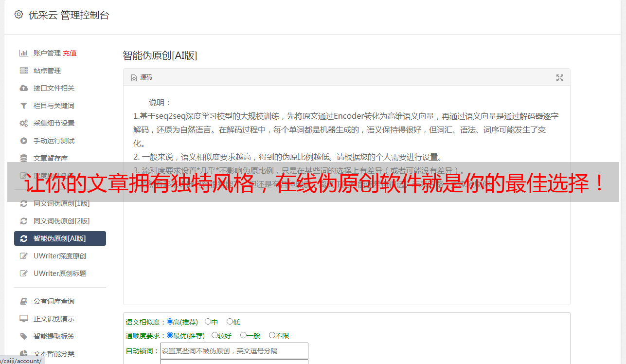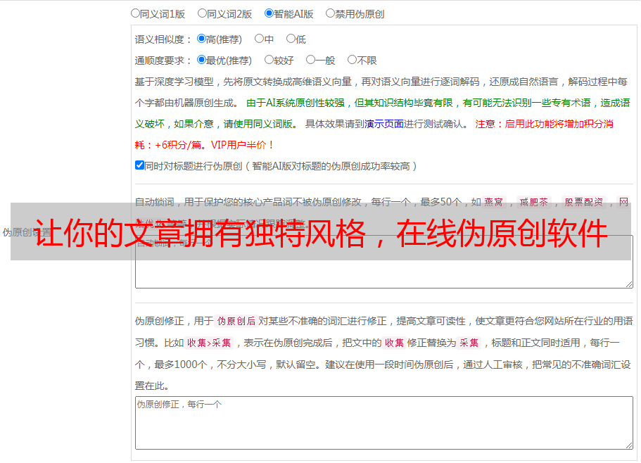 让你的文章拥有独特风格,在线伪原创软件就是你的最佳选择!