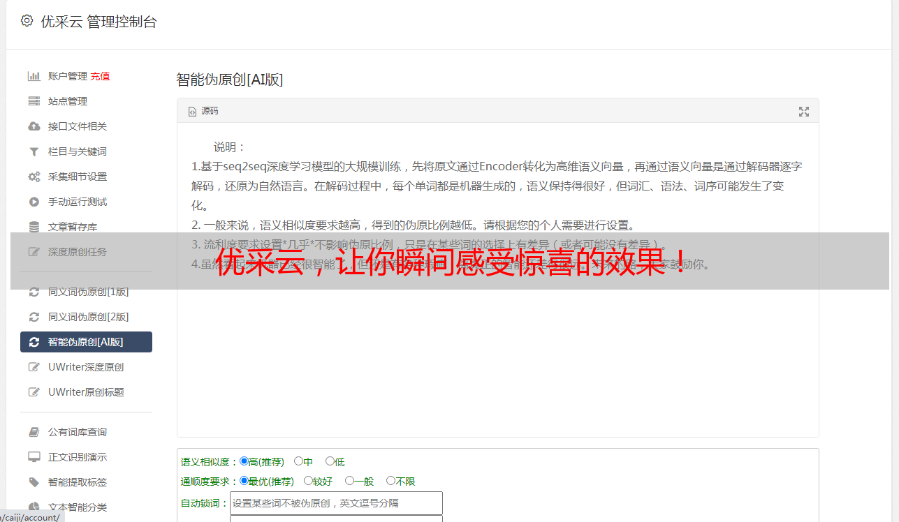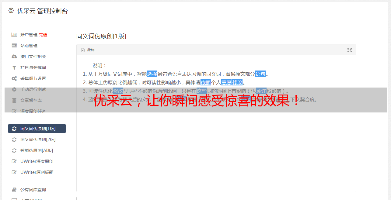 归根结底,优采云是一个强大而实用的工具。它不仅可以帮助用户快速创作出高质量的文章,而且还能够帮助用户对文章进行SEO优化。如果你想要创作出高质量、SEO友好性强的内容,不妨试试优采云!它将为你带来意想不到的效果!想要了解更多信息请上官网www.ucaiyun.com 浏览。