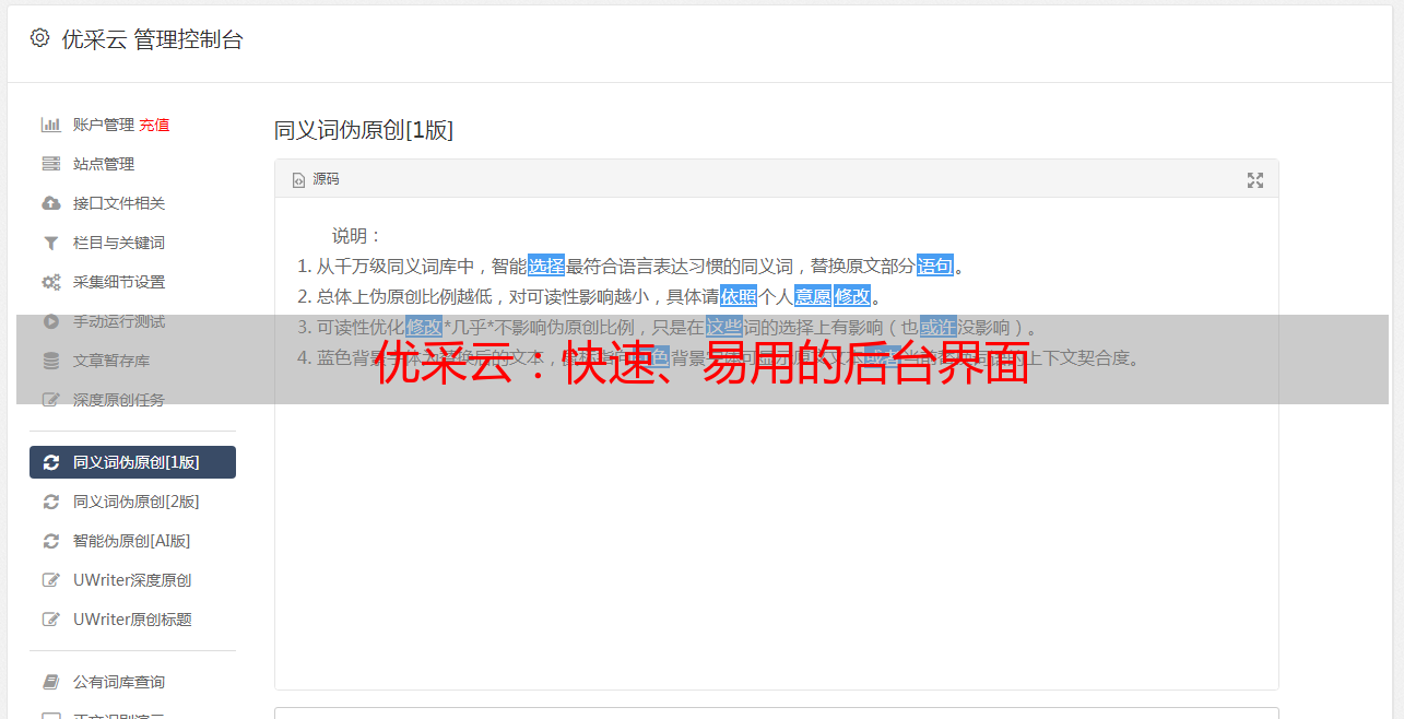 优采云:快速、易用的后台界面