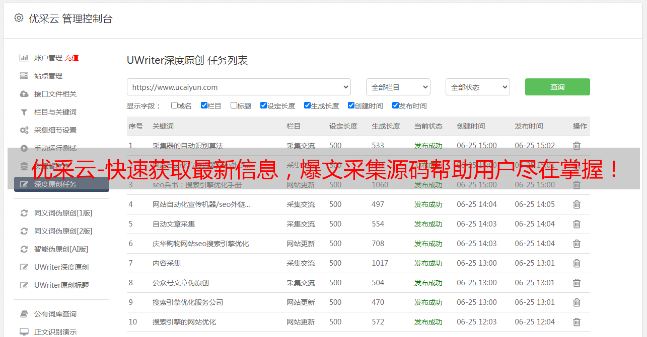 优采云-快速获取最新信息,爆文采集源码帮助用户尽在掌握!