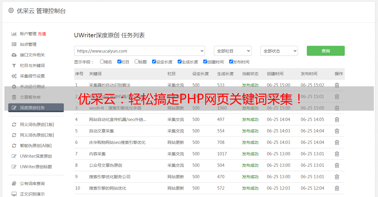 总之,优采云是一个功能强大、性价比很好的 php 网页关键词采集工具。感兴趣的朋友可以前往官网 www.ucaiyun.com 进行了解或者直接使用。