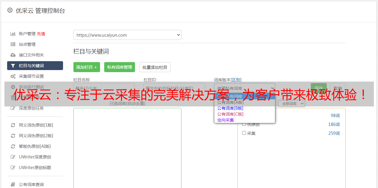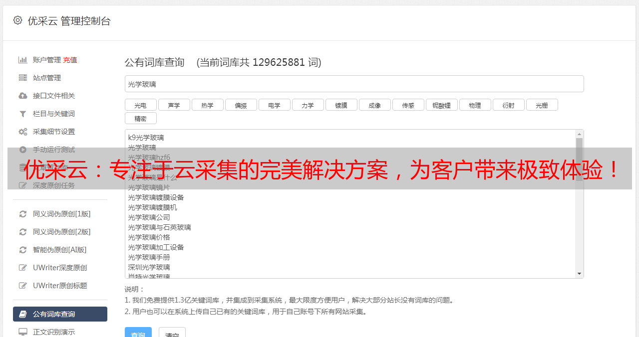 优采云:专注于云采集的完美解决方案,为客户带来极致体验!