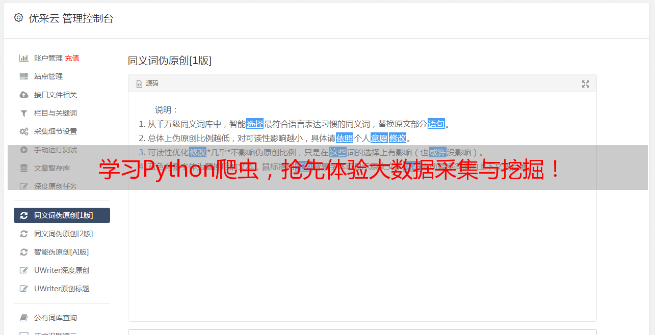总而言之,Python 爬虫大数据采集与挖掘课件是一套非常有用的课件,可以帮助大家更好地理解Python 爬虫的基本原理、应用场景、代码实例及工具使用方法。此外,优采云不断开发出新的SEO优化工具来帮助用户快速有效解决SEO问题。因此,如何使用Python 爬虫来快速有效地进行大数据采集和分析将成为一项十分重要的工作。
