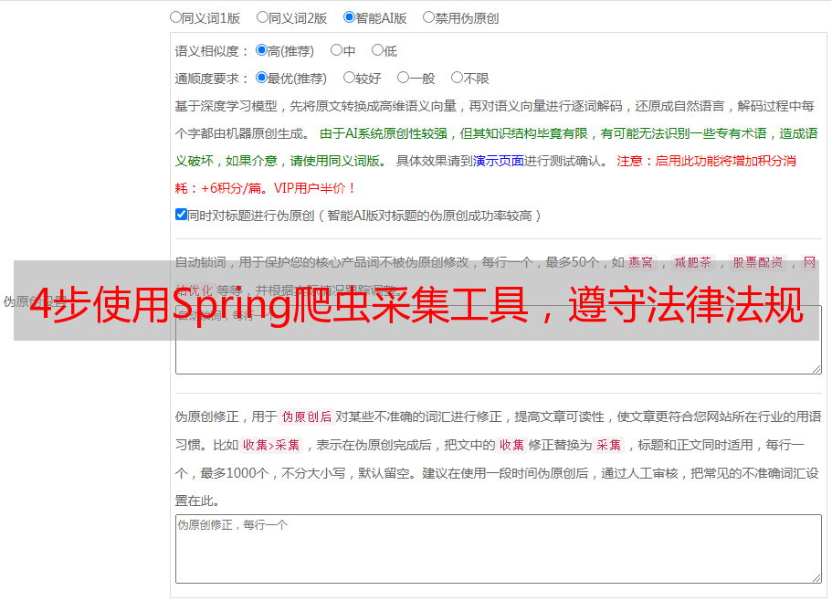 此外,使用 Spring 爬虫采集工具之前,也要注意遵循法律法规,避免侵权行为。