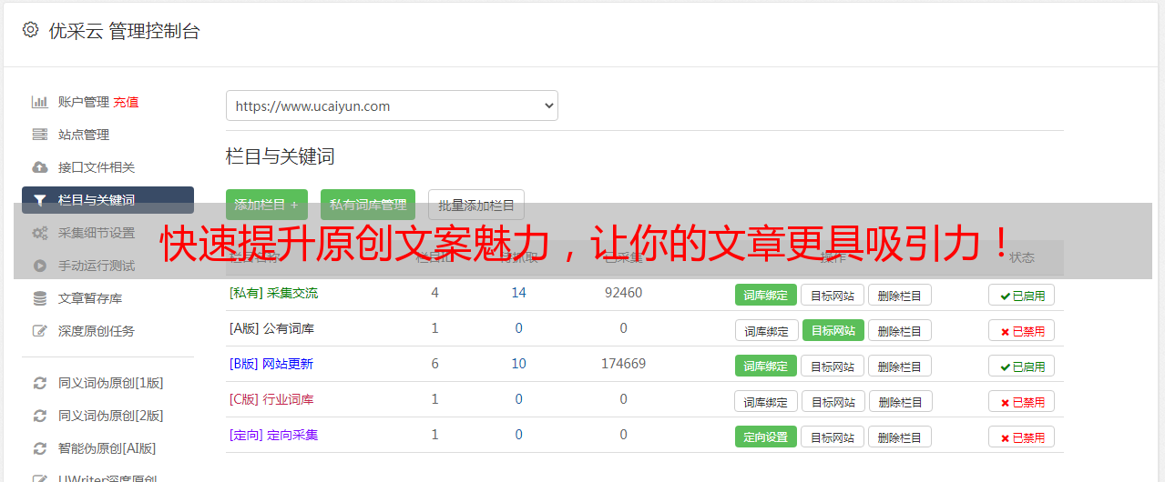 然而,在实际写作过程中,由于时间、精力和能力的限制,很多人都无法将自己的思想表达得清晰明了。为此,近年来出现了一款名为“优采云”的软件,它能够帮助用户快速、高效地修改原创文案。