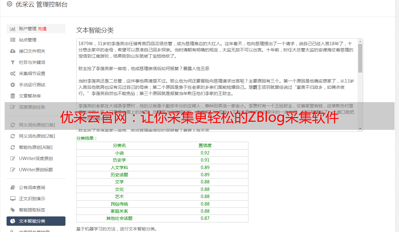 优采云官网:让你采集更轻松的ZBlog采集软件