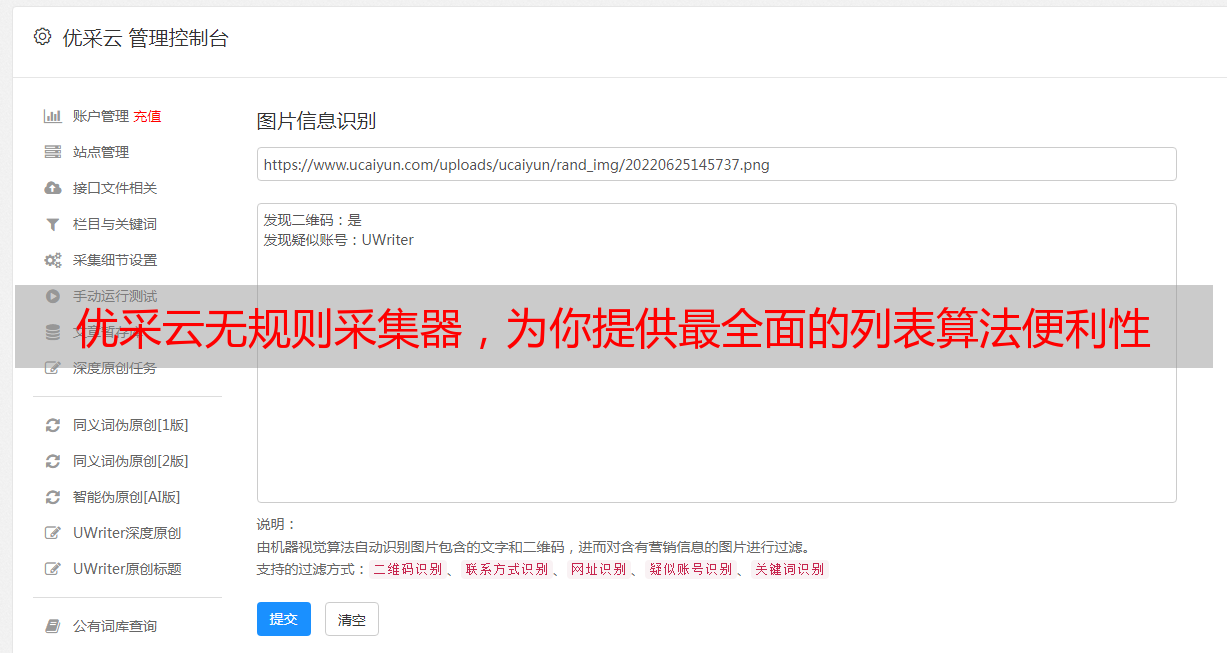 最后,如果你正在寻找一个能够帮助你快速准确地获取所需信息以及进行SEO优化的无规则采集器列表算法软件,那么就不要错过优采云了。它将为你带来最大的便利!你只需要上它的官方网站www.ucaiyun.com即可使用该软件。